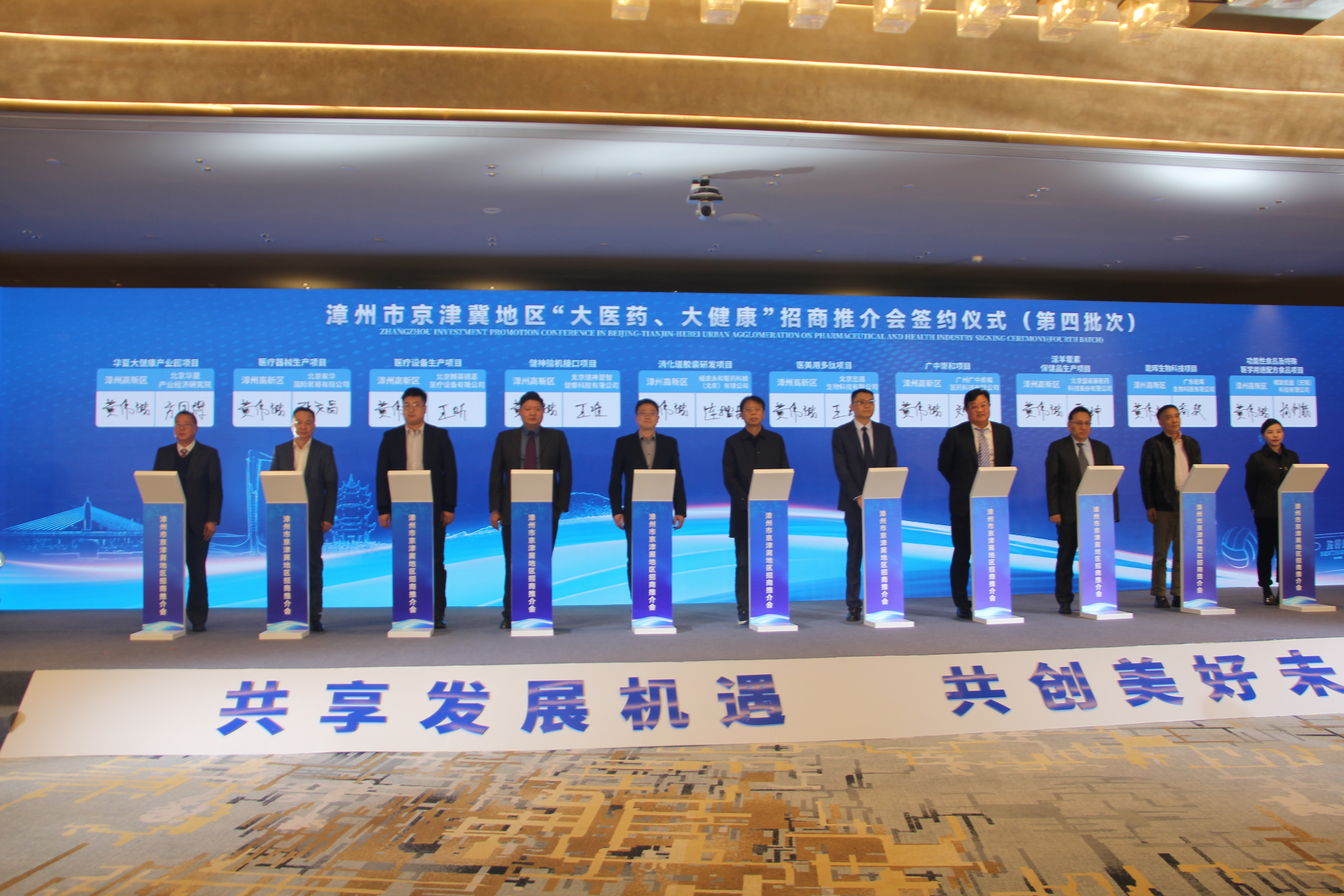 3月20日,为进一步推动漳州市与京津冀地区医药健康企业更深层次、更高水平的合作,加快建设漳州市医药健康产业集群,漳州市京津冀地区“大医药、大健康”招商推介会在北京举行。漳州市市长魏东、福建省驻京办主任施宇辉、福建省商务厅二级巡视员余传富、漳州市领导蔡总平、洪泰伟、马涛涛等出席招商会议。原国家质检总局总工程师、北京华夏产业经济研究院学术院长刘兆彬、执行院长方国辉、常务副院长修子雯、蔡亚港、副院长郭石泉、李臻、李兆信等一行共同出席本次会议。
