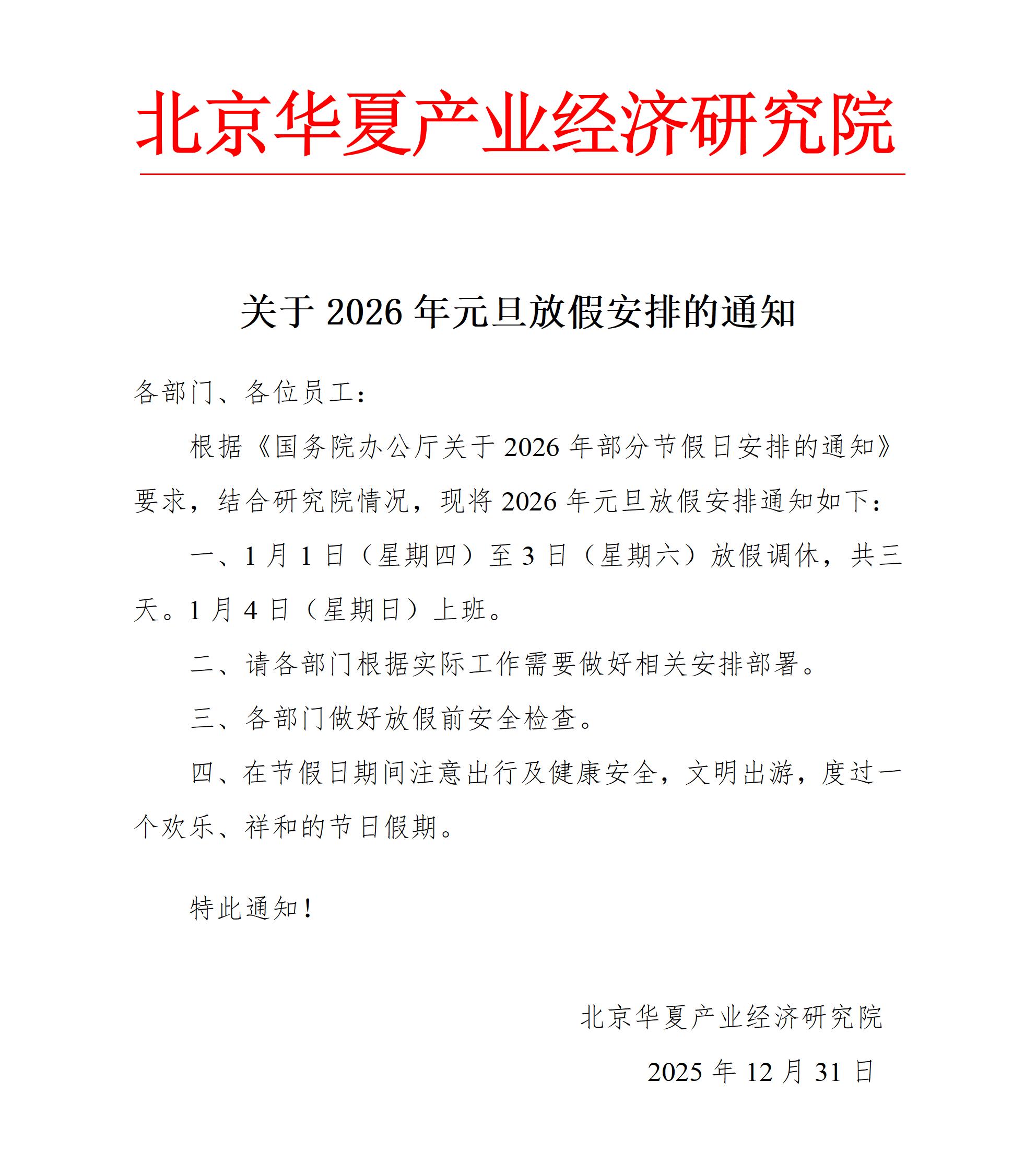 关于2026年元旦放假安排的通知